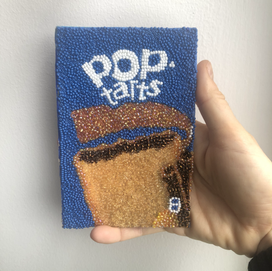 During the early months of the COVID-19 pandemic, I sought refuge from the crowded city by staying at my parents' house in Ridgewood, NJ. Over the four months I spent there, I discovered a new hobby—creating bead art inspired by my favorite pantry and kitchen items. Starting with a fruit bowl, I progressed to crafting pieces like the Quaker Oats container. This practice became a form of meditation, allowing me to shift my focus away from the world's uncertainty at that time.